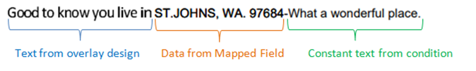 New Functionality within Conditional Text and Overlay option 11 added V6.99 (08/23/22) to dynamically append constant text to the end of a mapped field.