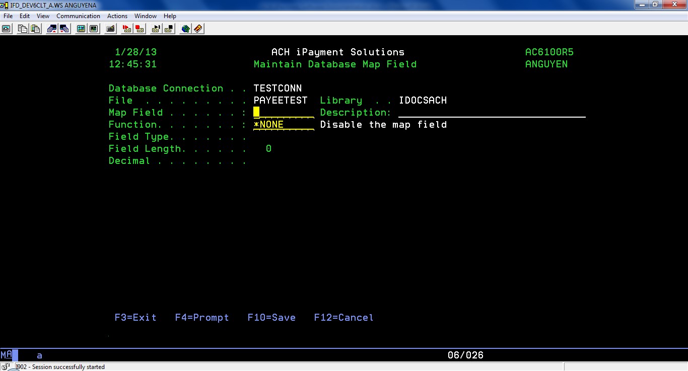 Press F6=Add to add a new map field which maps to a database field.