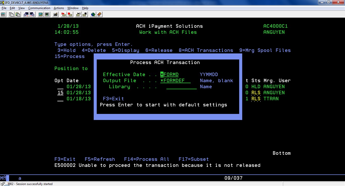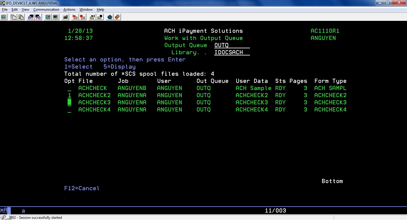 Merge ACH Definition with Spool File Option 11