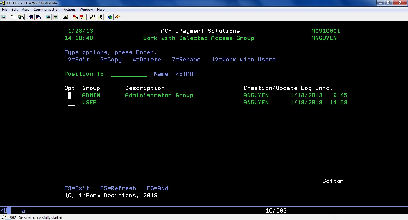 Firstly, you need to define a Selected Access Groups. From iPayment menu, select item 15. Work with Selected Access Groups