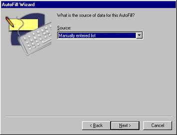 - Select Manually entered list to create the information for your AutoFill list and click Next>.