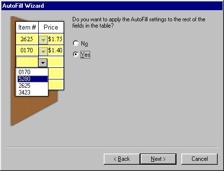 - Select Create or edit the AutoFill of the current field to create a list for your selected field and click Next>.