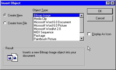 See the previous section, “ How to Insert OLE Objects” if you need to insert an object. How your object appears depends on the options you selected in the Insert Object dialog box.