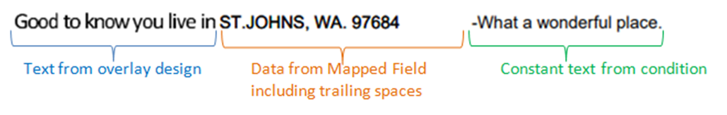 - Y = Trim the blank spaces within the Mapped Field to append the text immediately after the last character as shown in Example 1 below.