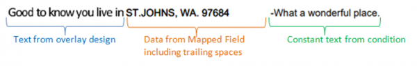 New Functionality within Conditional Text and Overlay option 11 added V6.99 (08/23/22) to dynamically append constant text to the end of a mapped field.