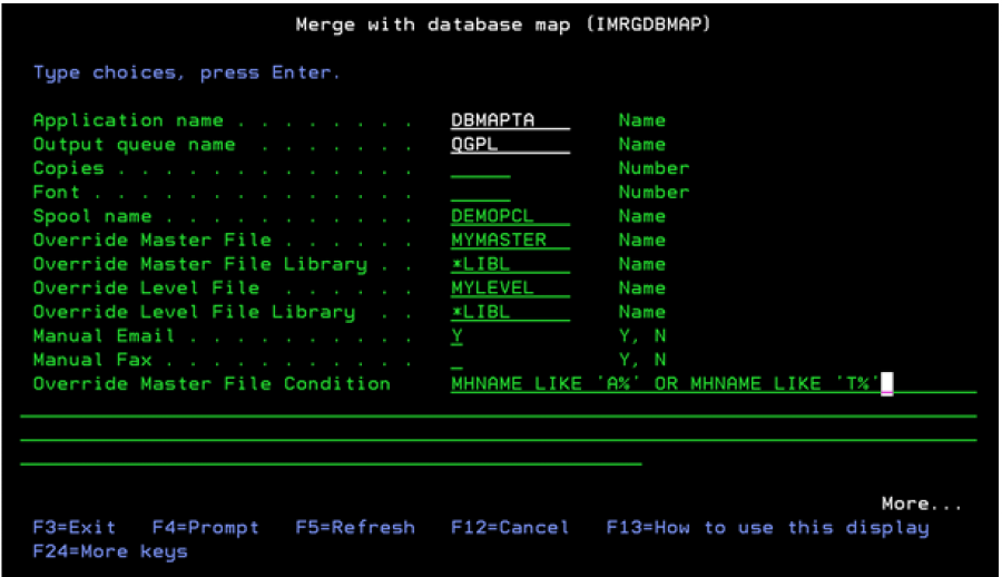 Navigate to the two new Database Mapping options, “19=Work with database map” or “20 Merge with database map” by selecting the “More Options” key, F23.