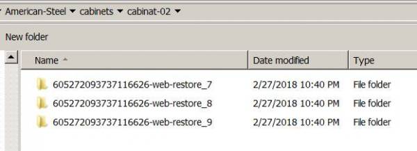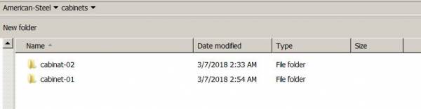 For example, I have a folder called cabinets which contains 2 sub folders: cabinet-01 and cabinet-02