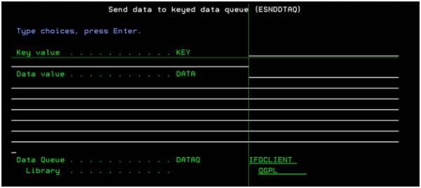 ESNDDTAQ KEY(USER01) DATA(‘/home/user/myfile.pdf’) DATAQ(QGPL/IFDCLIENT)