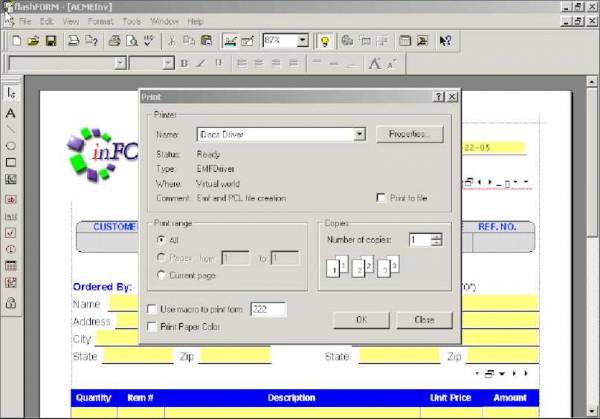 To do this, select File, then Print from the Designer’s pull-down menu. Choose the iDocs Driver from the list of printer drivers available, and click ok.