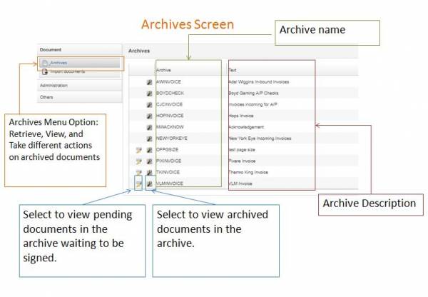 Documents in pending signature status can not be searched for in the regular archive, and vice versa. Clicking