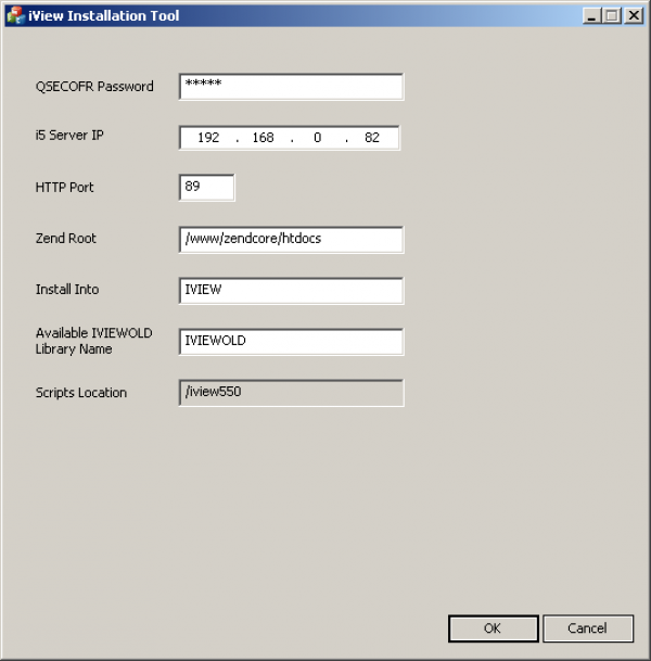 - Available IVIEWOLD Library Name: An unused library name to move any existing iView installation into. This is the backup copy. Leave set to IVIEWOLD if this is a new installation.