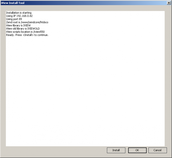 - Install Into: The name of the iView library to install into. Normally this will be IVIEW.