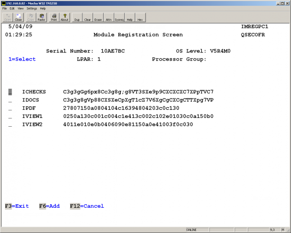 If you have keys to install you may enter or update them here. If this is an upgrade your keys should have carried forward. When done, press F3 to exit the registration screen.