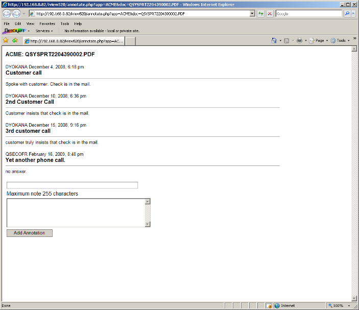 You can annotate the documents by clicking on the annotate link. The annotations are stored in a db2/400 table; the archived documents are not altered.