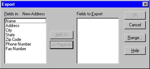 - Select each field that contains the information to export and click Add» to move it to the Fields to Export list box.