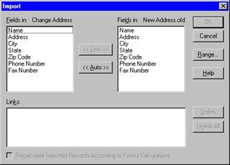 - If you want to specify a range of records to import, click Range… to open the Record Range dialog box.