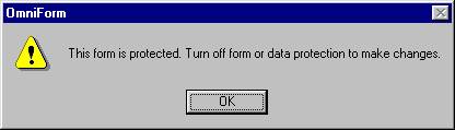 - If you wish, type a password in the Password text box. Passwords are case sensitive. You will be prompted to reenter your password for con¬firmation. The next time anyone tries to change the data, a dialog box appears, informing the user of the form’s protection status. The user will not be able to make any changes unless the user knows the pass¬word and can turn off the protection.